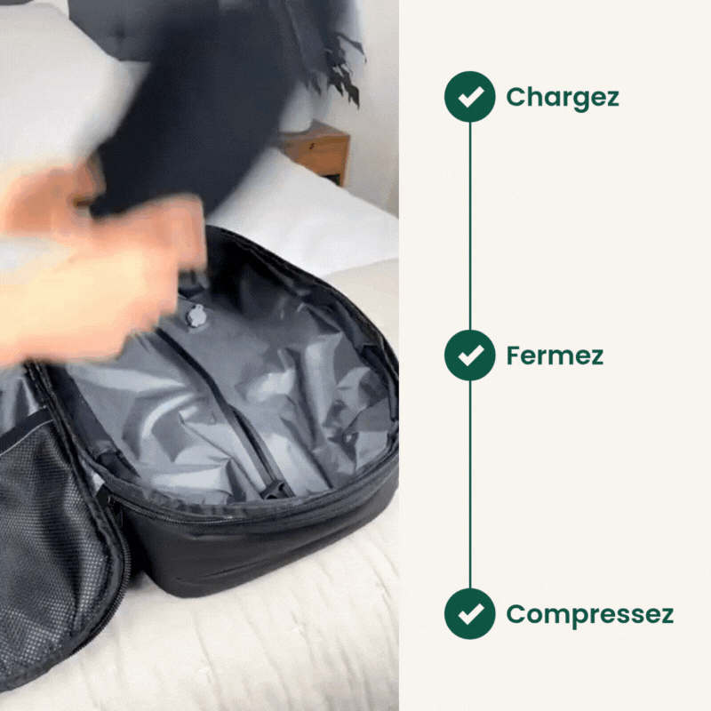 - Système de Compression Révolutionnaire : Le vide d'air vous permet d'emporter plus sans dépasser les dimensions cabine, assurant un voyage sans frais de soute.
